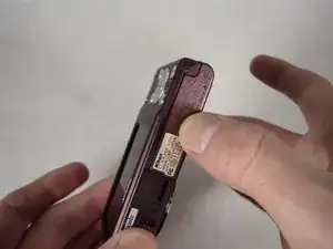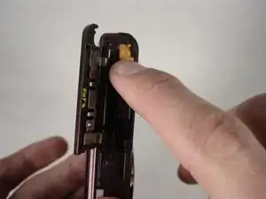 Сдвиньте крышку вправо, в сторону от камеры.