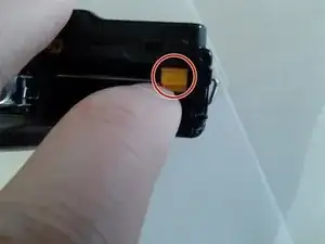 Сдвиньте/нажмите оранжевую кнопку в направлении стрелки, чтобы освободить аккумулятор. Аккумулятор должен немного выпрыгнуть, чтобы вы могли ухватить его и извлечь.