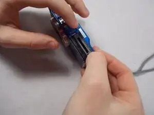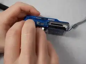 Извлеките аккумулятор. Нажмите на серый выступ на углу аккумулятора в сторону края камеры. Это освободит аккумулятор.