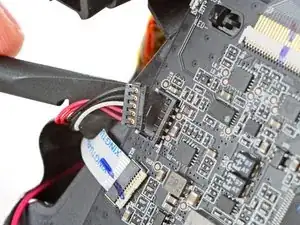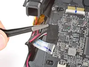 Отсоединение защёлки на этом шаге затруднено и, вероятно, потребует нескольких попыток. Будьте терпеливы и не применяйте чрезмерное усилие, иначе можете повредить камеру.