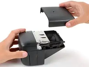 Плотные пластиковые защёлки крепят верхнюю панель к камере. Их отсоединение может быть затруднительным и, скорее всего, потребует нескольких попыток. Будьте терпеливы и используйте изображения в качестве ориентира для расположения защёлок.