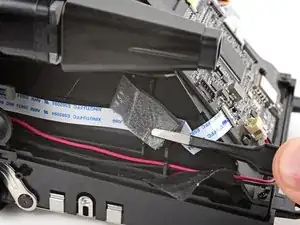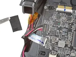 Отогните (или снимите) полоску скотча, фиксирующую кабели батареи к камере.