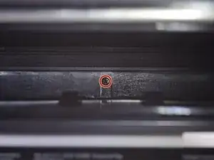 Используйте отвёртку с крестообразным наконечником, чтобы удалить винт длиной 5,9 мм, который крепит заднюю панель.