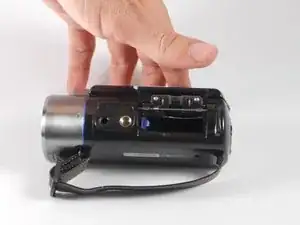 Найдите слот для аккумулятора на нижней стороне видеокамеры.