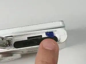 Поднимите синий держатель аккумулятора в направлении стрелки.