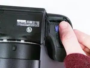 Отодвиньте крышку отсека аккумулятора от корпуса камеры.