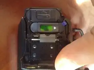 Большим пальцем нажмите вниз на небольшой синий фиксатор.
