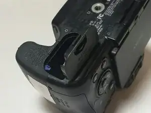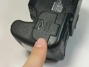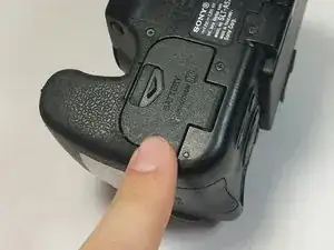Установите новый аккумулятор для цифровой камеры Sony Alpha SLT-A57 так, чтобы отрицательный полюс находился сверху пружины. Затем закройте крышку отсека, сдвинув её.
