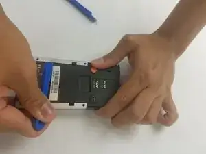 Приподнимите заднюю крышку, как показано, с помощью пластикового инструмента.