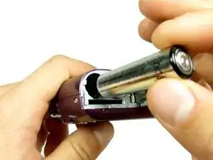 После завершения вы должны увидеть один аккумулятор с положительной стороной вверх, а другой — с отрицательной стороной вверх.