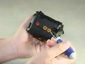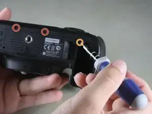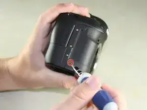 Снимите винт Phillips #00 длиной 8 мм с нижней части передней стороны камеры.