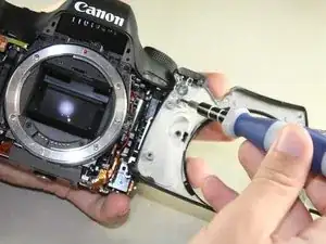 Удалите винт Phillips #00 в фокусе видоискателя.