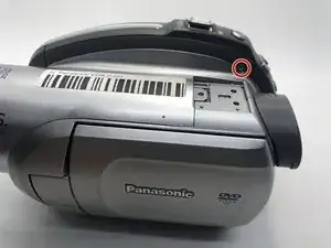 Поверните камеру на левую сторону. На верхней правой стороне металлической скобы, которую вы сняли на шаге 1, находится один винт.