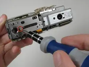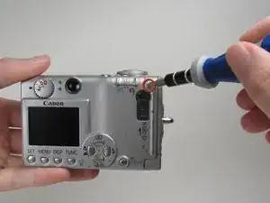 Открутите один винт Phillips с помощью отвертки Phillips #0.