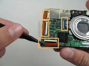 Снимите белый ленточный кабель, потянув лопатку от камеры, держа её параллельно плате логики.
