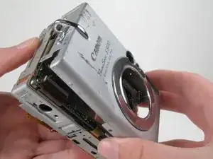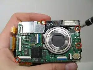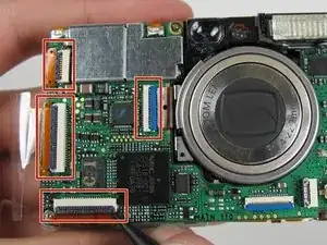 Опустите плату логики обратно так, чтобы она лежала на корпусе камеры.