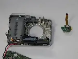 Ленточный кабель должен отсоединиться от материнской платы, но остаться подключённым к экрану, который теперь можно удалить из камеры.