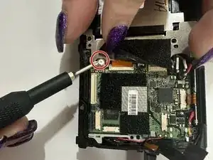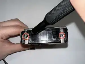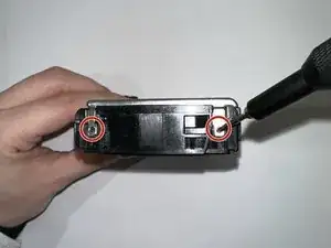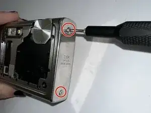 Переверните камеру так, чтобы задняя сторона была направлена от вас. Возьмите отвёртку размера #00 и выкрутите оба винта.