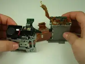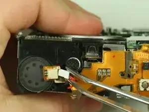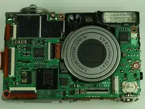 Удалите четыре винта, фиксирующие основную плату к остальной части камеры. (На изображении некоторые винты уже удалены)