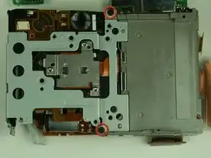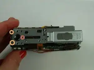 Найдите и удалите три винта 3.45 мм на задней стороне камеры, фиксирующие слот CompactFlash.