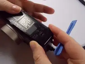 На этом шаге вы откроете отсек для батарей. Вы можете использовать пластиковый инструмент для открытия, отвертку с плоской головкой или любой другой аналогичный инструмент. На устройстве есть надпись "открыть" с указателем, указывающим направление для открытия отсека для батарей.