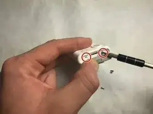 Используйте крестовую отвертку, чтобы удалить четыре винта PH00 размером 4 мм, расположенные по бокам устройства. Все винты находятся под серыми крышками для microSD-карты и microUSB-входа.