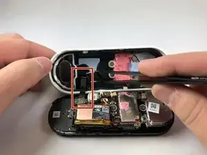 Как только задняя крышка будет снята, отключите кабель батареи и извлеките батарею из устройства.