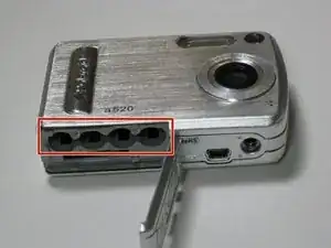 Извлеките батареи из камеры.