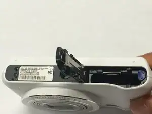 Откройте отсек батареи, расположенный в нижнем правом углу камеры.