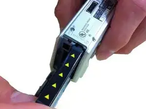 Оттолкните защёлку батареи от батареи до тех пор, пока она не освободится. Затем извлеките батарею.