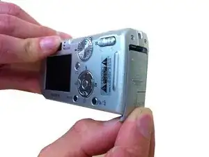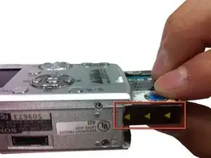 Вставьте батарею так, чтобы стрелки указывали в сторону камеры.