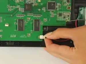 Отключите кабель, прикрепленный к материнской плате, нажав на внешний край кабеля и вытянув его.