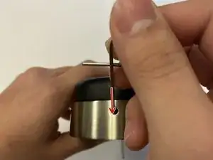 Убедитесь, что вы вставили тонкую металлическую шпильку в отверстие сверху и нажмите вниз, пока не почувствуете, что крышка ослабла, затем снимите её.