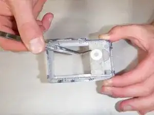 Осторожно отделите заднюю крышку от передней части камеры.