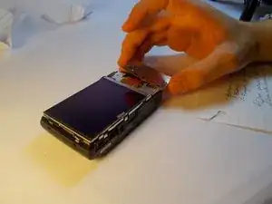 Будьте осторожны с гибким шлейфом. Не мните его и не тяните. Аккуратно отогните его от камеры.