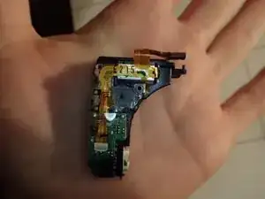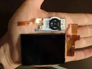 Если объектив выдвигается, а дисплей загорается, но пустой, снимите переднюю крышку и отключите шлейф дисплея, затем снова подключите его (под задним управляющим шлейфом — см. шаг 8). Это может произойти даже при визуально полной фиксации, а повторное подключение обычно решает проблему.