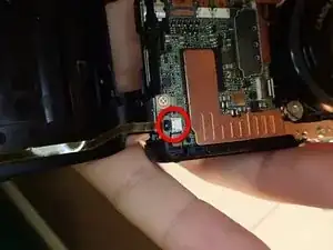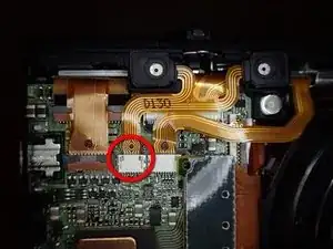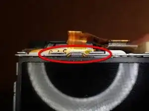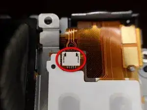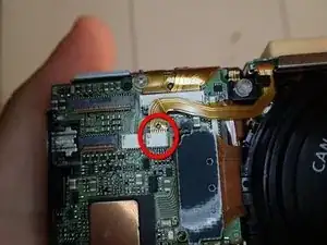 Отсоедините кабель матрицы, аккуратно поддев его вверх (передняя часть камеры возле объектива).