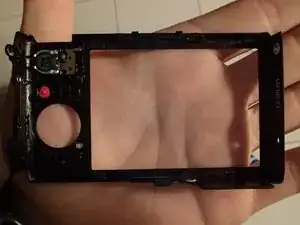 Дисплей вставляется слева направо, защёлкивая выступы на левом конце в металлический каркас камеры.