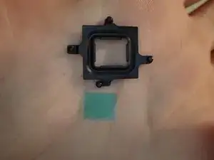 Аккуратно удалите 5 капель клея с краёв матрицы на старом узле объектива.