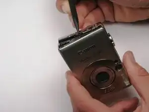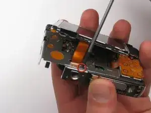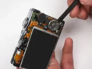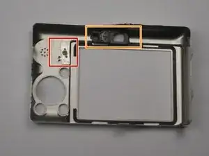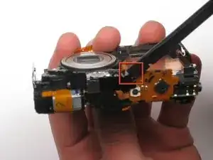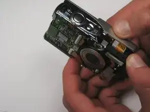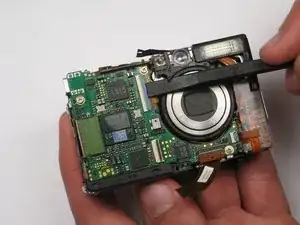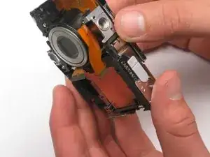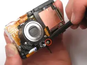 Выдавите деталь из верхней части камеры, тянув в сторону, противоположную направлению объектива.