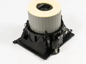 Найдите четыре винта на блоке объектива по углам и удалите их, чтобы ослабить корпус объектива от основной рамки. Убедитесь, что вы сохранили винты блока для следующего шага.