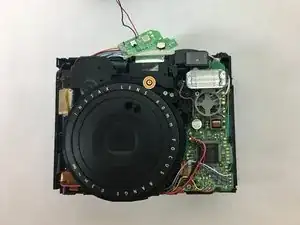 Удалите следующие два винта крестовой отверткой Phillips #000. Верхний винт длиной 1.75 мм направлен внутрь, к центру блока объектива. Нижний винт длиной 4.75 мм расположен справа от верхнего винта и направлен вниз в корпус камеры.