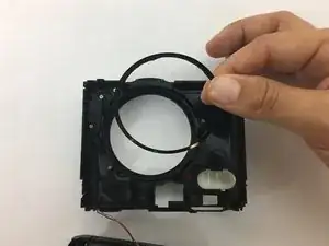 Отложите в сторону чёрную пластиковую петлю, находящуюся внутри отсека объектива.