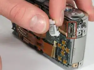 В результате у Вас будут отдельно логическая плата и верхняя панель соединений, свободные от корпуса камеры.