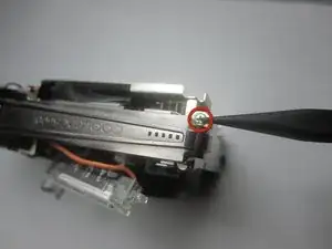 Удалите два винта 3,2 мм, которые крепят вспышку к передней панеле.