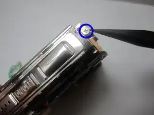 Удалите один винт 2,6 мм с левой стороны камеры (объектив направлен вперёд).