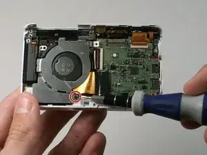 Отверткой Phillips #00 отвинтите четыре винта Phillips 2,381 мм на задней стороне камеры и один винт Phillips 2,381 мм на дне камеры.