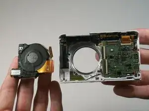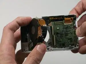 Используйте пластиковый инструмент для вскрытия, чтобы снять серебряную металлическую крышку объектива.