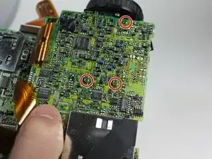 Удалите один винт 3,6 мм спереди видеокамеры на плате.