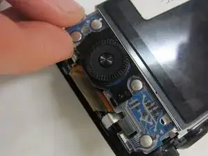 С помощью пальцев выдвиньте нижний конец платы колёсика управления, затем разберите другой конец с защёлки.